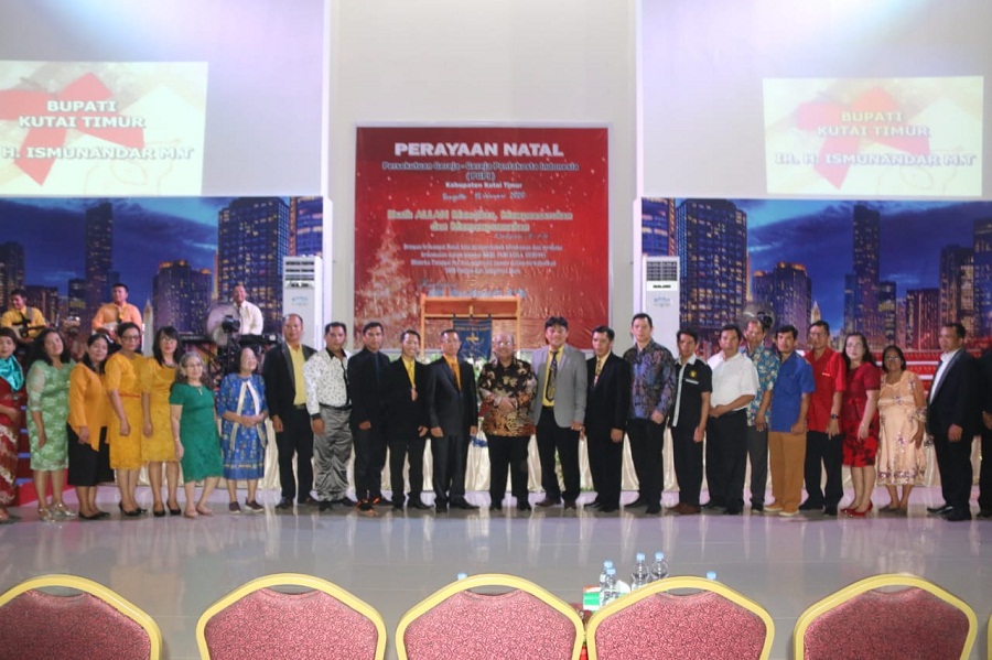 SANGATTA- Bupati Kutai Timur, Ismunandar menghadiri perayaan Natal Persekutuan Gereja-Gereja Pentakosta Indonesia (PGPI) Kutim di Gereja Bethany Indonesia, Sangatta pada Rabu (15/1/2020).