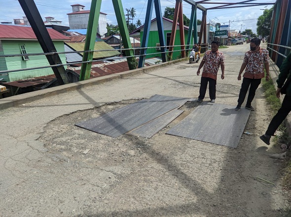 Dikatakan Rachmat, kondisi terakhir jembatan yang dibangun sekitar tahun 2000 dengan panjang sekitar 40 meter dan lebar 7 meter ini sudah sangat parah bahkan salah satu besi penopangnya sudah patah, siap ambruk. Ia meminta segera dilakukan penaganan cepat.