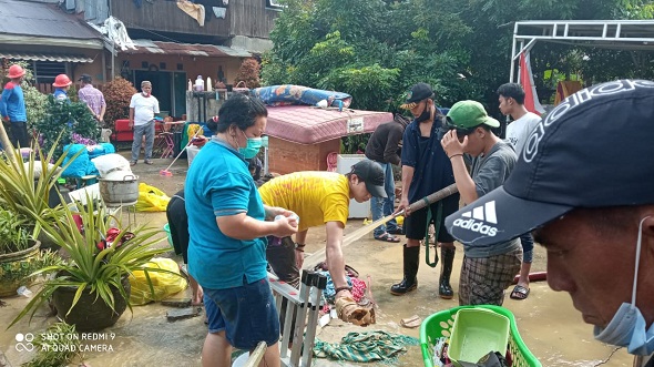 “Airnya tiba-tiba deras dan tingggi. Dari hujan sore hingga malam, malam air surut dan kami mulai bersih-bersih hingga sekarang ini, ” kata warga RT 06 Natanel