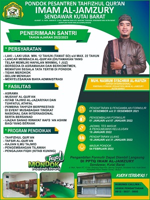 “Saat ini kami masih menerima pendaftaran siswa baru dengan kuotanya terbatas. Sementara hanya untuk siswa laki laki saja, insyaallah nanti yang perempuan akan menyusul,” kata Nasrum Kamis (6/1/2022).