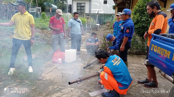 Saat proses peminjaman Riyad juga melatih operator yang akan menggunakan alat ini, mulai bagaimana cari mengidupkan, mengoperasikan, mematikan alat Fogging buatan German, hingga mengoplos cairan yang digunakan untuk pembasmi nyamuk DBD ini. “Khusus untuk cairan pengasapan ini terdiri dari Solar 20 liter dicampur dengan Cinoff 1 liter, dikocok hingga rata baru dimasukkan ke dalam tangki fogging,” jelas Riyad.(man)