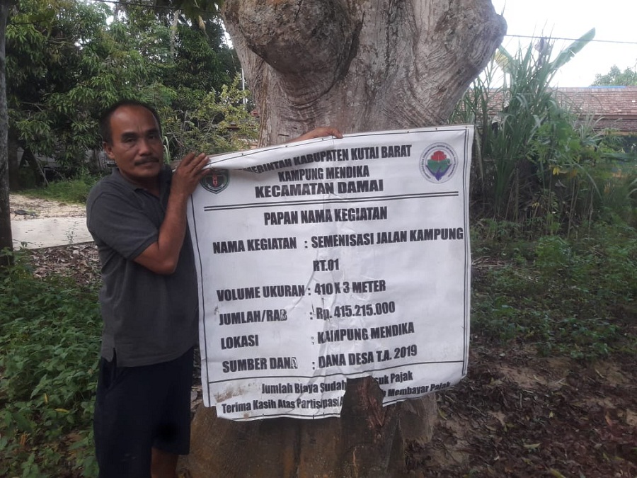 Bambang menuturkan, pekerjaan semenisasi dengan panjang 410 meter, lebar 3 meter, dan tebal 15 cm, total nilai pekerjaan Rp. 415.215.000 melibatkan pekerja masyarakat dua RT di Kampung Mendika. Jumlah pekerja sebanyak 15 orang, terdiri dari para pemuda dan semua masyarakat miskin di kampung Mendika.