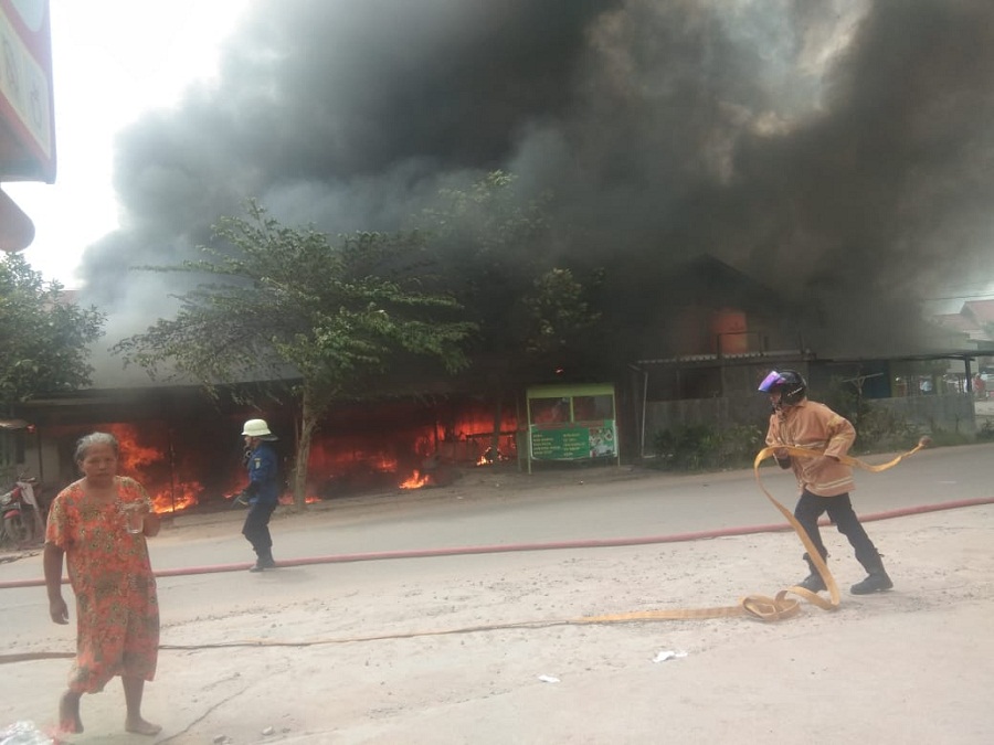 SANGATTA-Si jago merah kembali memporak-porandakan bangunan di kawasan padat penduduk yaitu di Jalan Margo Santoso, Desa Sangatta Utara, Senin (13/10/2020) sekitar pukul 11.00 Wita. Ada tiga bangunan berbahan kayu ludes jadi arang. Besarnya kobaran api meluluhlantahkan bangunan yang diketahui adalah sebuah rumah yang dijadikan usaha waralaba.