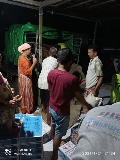 Sekitar pukul 20.00, Kamis malam 21 Januari 2021 tim relawan tiba di Desa Mahang Baru, langsung menuju ke rumah Jan Jani, salah satu tokoh masyarakat di desa Mahang Baru. Setibanya di rumah — warga sekitar langsung memenuhi rumah Jan Jani, menyambut relawan bak tamu agung yang ditunggu-tunggu. Tak perlu waktu lama, halaman rumah Jan Jani dipenuhi dengan warga masyarakat sekitar yang ingin membantu Tim Relawan.