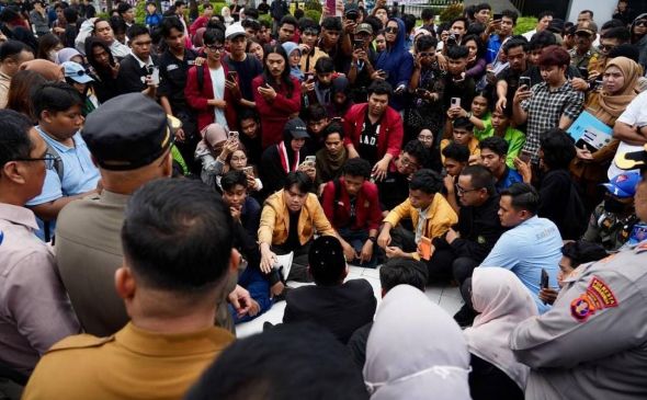 Dengan setelan jas hitam, dari biru muda dan sepatu mengkilat, ia duduk bersila bersama mahasiswa, menciptakan suasana yang lebih akrab dan santai. Harum, sapaan akrab Rudy Mas’ud pun membuka perbincangan dengan menanyakan langsung data dan pengalaman mahasiswa terkait program beasiswa yang mereka terima.