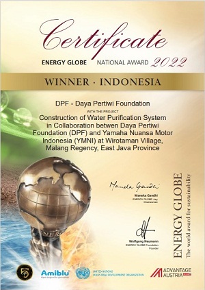 JAKARTA – PT Yamaha Motor Nuansa Indonesia (YMNI) selaku produsen water purifier bermerek Yamaha, bekerja sama dengan Daya Pertiwi Foundation (DPF) sukses mendapatkan penghargaan bergengsi, yaitu Energy Globe National Award 2022 yang diberikan Energy Globe Foundation, sebuah organisasi nirlaba yang bergerak di bidang ketahanan lingkungan yang berlokasi di Negara Austria.
