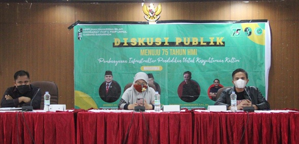 SAMARINDA – Menjelang hari lahir Himpunan Mahasiswa Islam (HMI) yang Ke-75, HMI Komisariat FKIP dan FISIP UNMUL menggelar agenda Diskusi Publik mengusung tema “Pembangunan Infrastruktur Pendidikan untuk Kesejahteraan Kaltim” pada Kamis (03/02/2022) di Ruang Rapat Bina Bangsa Kesbangpol Kaltim.