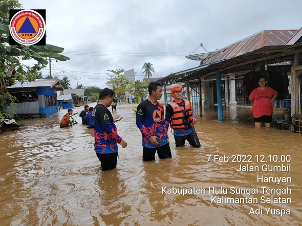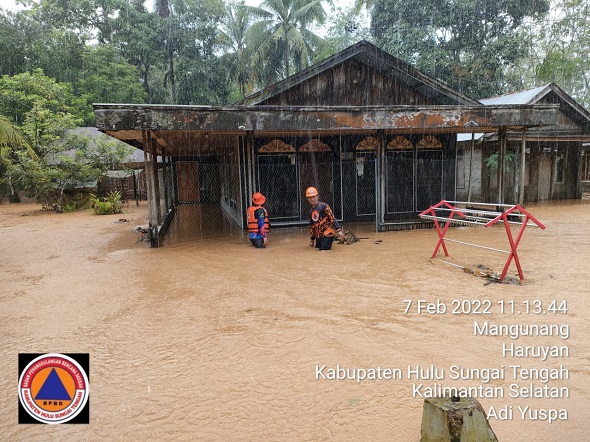 Banjir di dua wilayah kabupaten yang bertetangga ini sebagai akibat  guyuran hujan deras di kawasan pegunungan Meratus, Senin  (7/2/2022) dinihari. Air bah meluap  siang hari sampai sore.