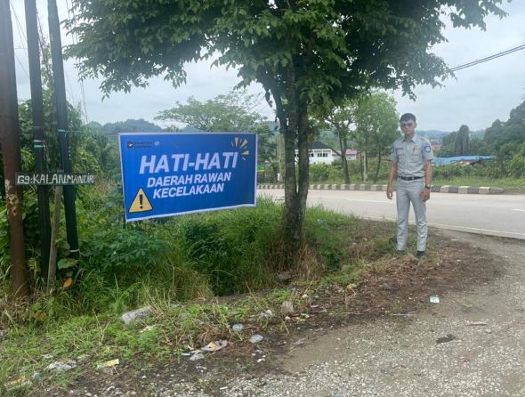 Kegiatan tersebut dilaksanakan petugas Jasa Raharja, Rivaldy Arvelsa Landarto, sebagai bagian dari upaya preventif untuk menekan angka kecelakaan lalu lintas di wilayah rawan kecelakaan. Spanduk yang dipasang berisi pesan-pesan imbauan keselamatan, seperti “Hati-hati daerah rawan kecelakaan”