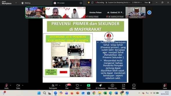 JAKARTA – Ketua Yayasan Jantung Indonesia (YJI) Pusat, Annisa Pohan Yudhoyono mengajak semua peserta Webinar dalam rangka ulang tahun Klub Jantung Sehat (KJS) ke 48 untuk terus menjaga kesehatan jantung. Imbauan ini disampaikan dihadapan ribuan peserta webinar dari Sabang sampai Merauke yang diikuti oleh para Pengurus YJI Pusat, YJI Cabang Provinsi, maupun YJI Cabang Kabupaten/Kota serta Klub-Klub Jantung Sehat di seluruh Indonesia.