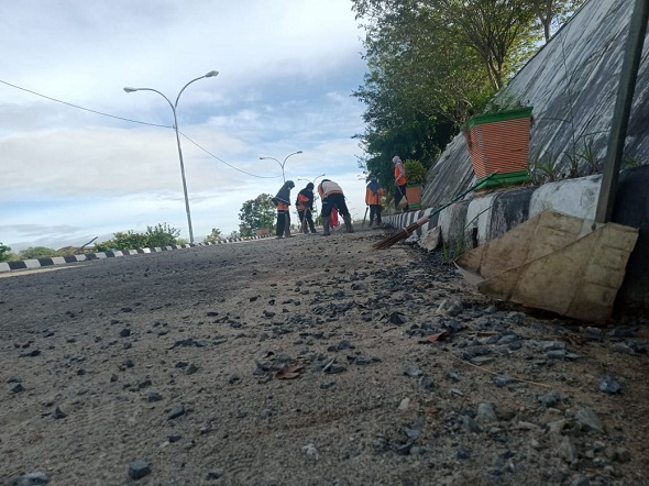 Kegiatan pembersihan fokus pada pembersihan badan jalan serta pembersihan semak dan rumput yang tumbuh menjalar di kedua sisi jalan. Selain mempertimbangkan aspek kenyamanan bagi pengguna jalan, pembersihan badan jalan juga mempertimbangkan lingkungan sekitar karena di sekitarnya ada ruang terbuka hijau yang perlu dijaga keindahannya.