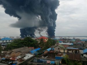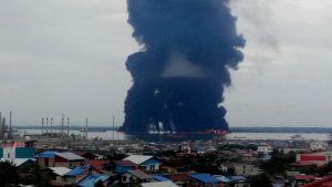 Tumpahan Minyak Hanguskan Kapal Kargo dan Kapal Nelayan