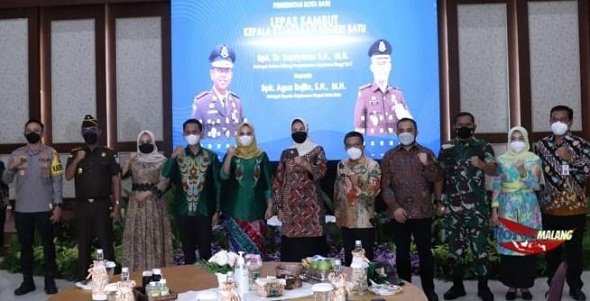 Wali Kota Batu Dewanti Rumpoko dalam melepas Supriyanto dan menyambut Agus Rujito tidak mau sendirian melainkan mengajak forkompinda ( Forum Komunikasi Pimpinan Daerah ), ada Kalpolres,Dandim 0818, wkl.ketua DPRD dan wakil walikota Batu.
