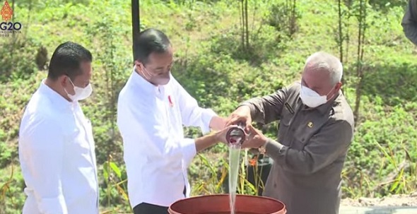 “Tanah dan air yang dibawa 34 gubernur telah kita satukan di dalam kendi yang akan akan menjadi lokasi IKN, ini merupakan bentuk kebhinekaan kita dan persatuan yang kuat dari kita dalam rangka membangun IKN Nusantara,” kata Jokowi.