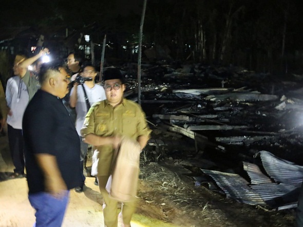 Wabup memberikan bantuan pribadi bahan makanan berupa beras, telur, mie instan dan bahan pokok lainnya kepada para korban kebakaran tersebut.