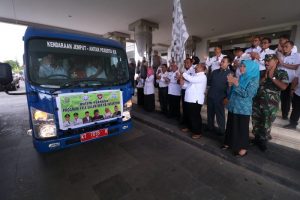 Bupati Ismunandar saat melepas konvoi penyuluhan KB pria di Halaman Kantor Sekretariat Kabupaten (Foto: Jani)