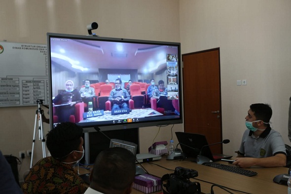 SANGATTA – Rapat membahas langkah-langkah antisipasi pencegahan dan penyebaran COVID-19, Mendagri RI Gelar Rapat Melalui Video Conference (VC), Bupati Kutai Timur H Ismunandar pun ikut terlibat melaui video itu di Ruang video conference, Kantor Dinas Kominfo-Perstik Kutim, Kamis (2/4/2020).