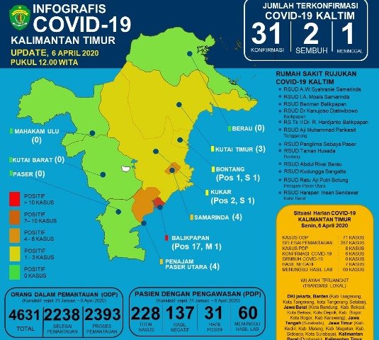 Di Kaltim, Sudah 31 Terkonfirmasi Positif Covid-19