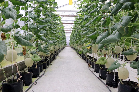 Melon yang ditanam dib alai ini menggunakan sistem fertigasi. Site mini merupakan salah satu dari metode hidroponik. Fertigasi merupakan teknik aplikasi unsur hara melalui sistem irigasi. Dengan teknik Fertigasi biaya tenaga kerja untuk pemupukan dapat dikurangi, karena pupuk diberikan bersamaan dengan penyiraman.
