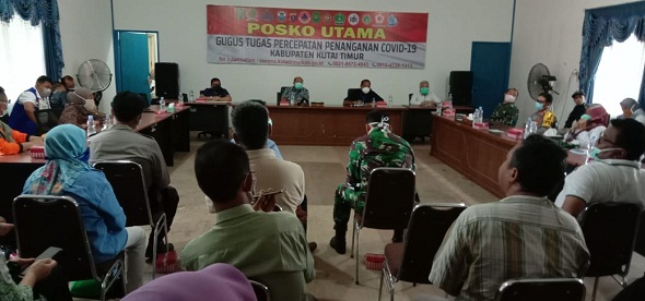 Rapat evaluasi penanganan Covid-19 di Posko Utama (Kantor BPBD) KutimJalan Soekarno Hatta. (Wak Hedir)