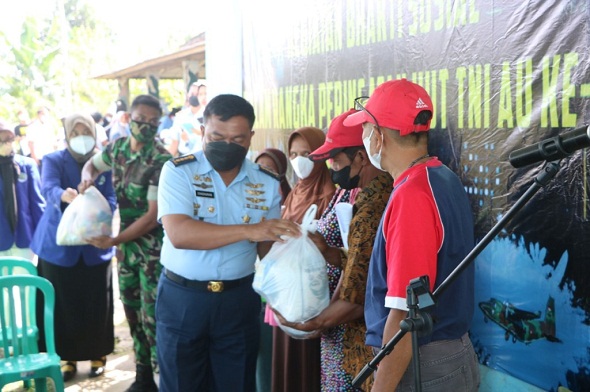 Pemberian tali asih berupa paket sembako kepada perwakilan warga Senggreng dan pelaksanaan vaksin di Detasemen TNI AU Senggreng oleh tenaga medis dari Rumah Sakit TNI AU dr M. Munir Lanud Abdulrachman Saleh.