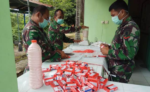 Vivaborneo.com, Tarakan –  Komando Distrik Militer 0907 Tarakan, Kalimantan Utara membagikan sabun cair untuk cuci tangan ke masyarakat di Kota Tarakan. Kreatifnya, ribuan sabun batangan yang bentuknya padat, dihancurkan dan dijadikan cair, sehingga menambah jumlah dan volume sabun. Dengan begitu, warga yang berkesempatan mendapatkan sabun juga semakin banyak.