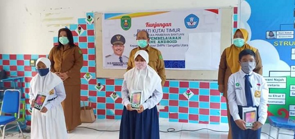 Menyikapi hal itu, Pemkab Kutai Timur (Kutim) melalui Dinas Pendidikan (Disdik) tetap melakukan ikhtiar. Dari SMP 1 Sangatta Utara, kepala sekolah Kartini, telah mengajukan permintaan bantuan alat pembelajaran untuk menghadapi sistem belajar online di rumah kepada Bupati Kutim. Akhirnya pengajuan itu dikabulkan oleh Bupati.