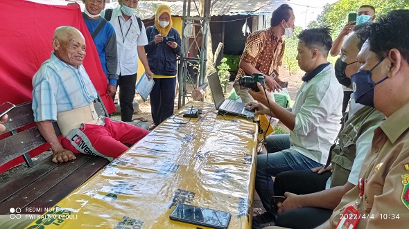 Pelaksanaan perekaman E-KTP yang langsung disaksikan Feri Afrianto, Danang dan Gunawan anggota Tim Kemensos juga di Saksikan Kadis Sosial Kota Samarinda Isfihani berlangsung di depan gubug Mbah Min yang ada di dalam lokasi bengkel Las Rajeg Wesi.