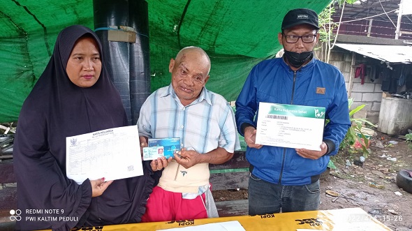 “Kartu BPJS yang asli masih proses, sebulan baru jadi, ini simbolik dulu. Mbah Min tidak perlu bayar iuran karena iuran ditanggung dinas sosial kota Samarinda,” jelas Isfihani saat menyerah kartu BPJS secara simbolik yang diterima Mbah Rusmin. (mun)