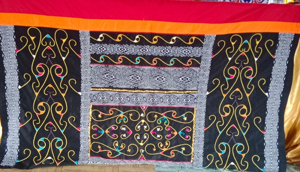“Kerajinan sarut ini sangat unik menjahit motif tanpa menggunakan pola murni dari imajinasi sang pengrajin,”ungkapnya.