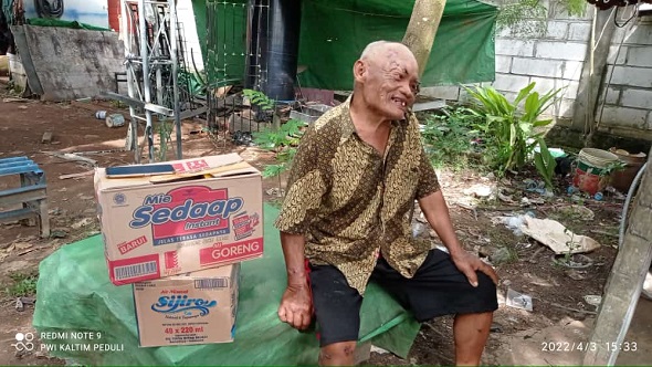 SAMARINDA – Rusmin (63) atau lebih akrab di panggil Mbah Min, lansia yang tinggal di bengkel Las Rajeg Wesi Mbah Min di jalan PM. Noor Samarinda, beberapa waktu lalu mengalami kecelakaan keadaannya semakin membaik, setelah diberikan terapi oleh Gunawan dari Sentra Soeharso Surakarta yang turun bersama tim Kemensos.