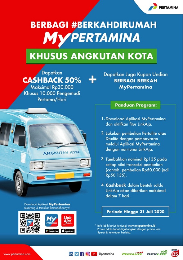 Untuk mengikuti program ini, pengemudi angkot harus mengunduh aplikasi MyPertamina dan mengaktifkan fitur LinkAja. Kemudian pengemudi dapat melakukan pembelian BBM Pertalite dan Dexlite dengan pembayaran non tunai LinkAja yang ada di aplikasi MyPertamina. Cashback berlaku untuk 1 kali transaksi per hari dan program ini tidak dapat digabungkan dengan program promosi lainnya, namun semua pengemudi angkot yang bertransaksi dengan MyPertamina tetap mendapatkan kupon untuk mengikuti undian Berbagi Berkah MyPertamina 2020.