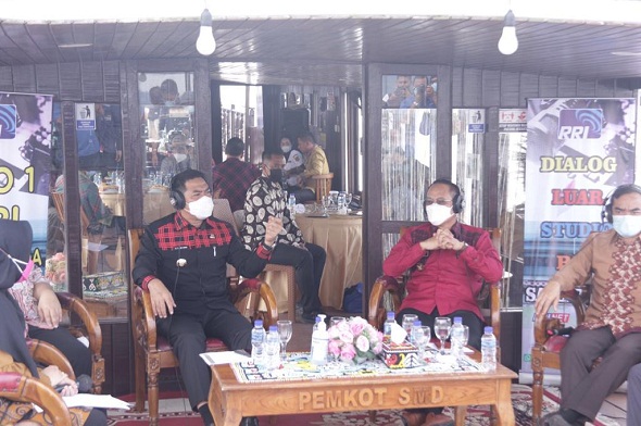 Andi Harun bersama Wakil Wali Kota (Wawali) Rusmadi pada dialog interaktif garapan Dinas Komunikasi dan Informatika (Diskominfo) Samarinda ini berlangsung di tengah Sungai Mahakam menggunakan kapal wisata Pesut Etam