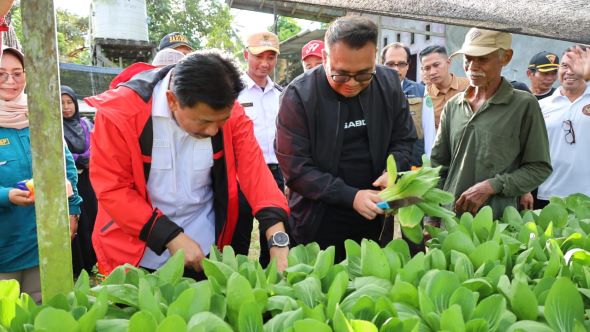 Bupati yang saat itu sempat memanen sayuran di lahan kelompok PTS Swadaya Mandiri mengapresiasi apa yang dilakukan Poktan yang sudah menanam hingga berhasil panen sayur.
