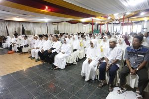 SIAP TERBANG KE TANAH SUCI: Calon Haji Kutim saat mengikuti bimbingan manasik bersama panitia haji dari Kemenag Kutim di Hotel Mesfa Mulia beberapa waktu lalu. (Foto: Irfan)