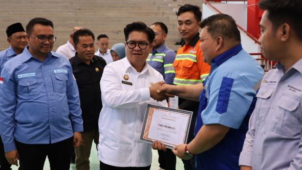 Pada kesempatan itu juga diberikan penghargaan kepada Perusahaan yang aktif di bidang ketenagakerjaan, serta diserahkan Tunjangan kematian dari BPJS yang diterima ahli waris pekerja.