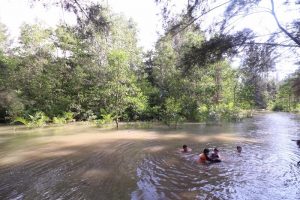 EKSOTIS: Spot asik untuk berenang di kawasan Pantai Jepu-jepu. Pengunjung bisa berkemah dan berenang di anak sungai. Tidak hanya itu airnya bisa diminum karena berasal dari air mata pegunungan karst. Foto: Irfan
