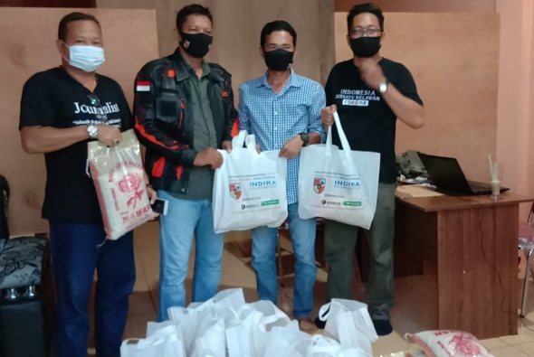 Ketua MPC PP Kubar, M Teddy Rahmat Hidayat membagikan sembako di Kantor Sekretaria Asosiasi Jurnalis Kubar Mahulu, Kelurahan Simpang Raya, Kecamatan Barong Tongkok, Sendawar , Selasa sore (28/7/2020)