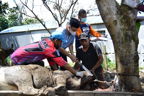 SAMARINDA- Wakil Gubernur Kaltim Hadi Mulyadi memimpin langsung penyembelihan hewan kurban yang diadakan alumni SMP Negeri 1 Samarinda (SPANSA 84) di Jalan AW. Sjahranie, Kamis (22/7/2021).