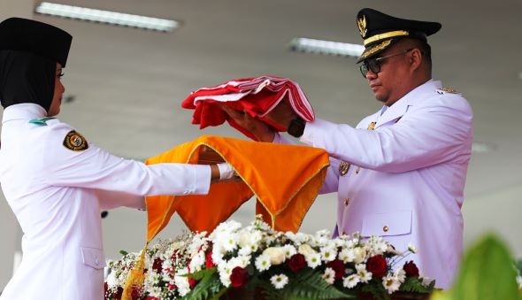 Kegiatan dilanjutkan penyerahan Bendera Merah Putih oleh Bupati Aulia Rahman Basri kepada petugas pembawa bendera untuk selanjutnya dilakukan pengibaran oleh pasukan pengibar bendera pusaka (Paskibraka) terdiri dari para pelajar SMU/Sederajat yang merupakan putra-putri terbaik Kukar dibawah asuhan Kesbangpol Kukar, serta pasukan 45 terdiri dari unsur TNI Polri dari Batalyon Armed 18/Buritkang dan Polres Kukar.