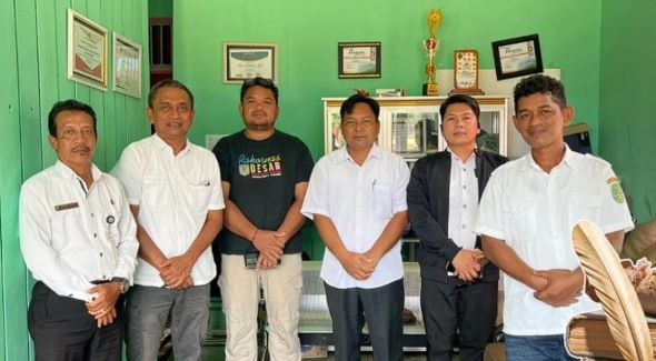 Kunjungan Kabid PKNNK, Dedy Wahyudi, bersama Pustakawan Mahir, Jumadi, serta staf bidang PKNNK, Taufik Hidayatullah dan Rahmat Hidayat mendapat sambutan Kepala Desa Kedang Ipil, Kuspawansyah, bersama staf desa, Farhan, yang juga merupakan keturunan tokoh adat setempat.
