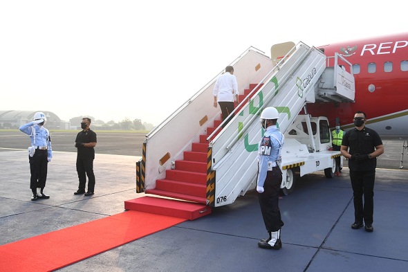 SAMARINDA – Presiden Joko Widodo melakukan kunjungan kerja di Provinsi Kalimantan Timur (Kaltim) Selasa. (24/8/2021) Dengan menggunakan Pesawat Kepresidenan Indonesia-1, Presiden dan rombongan lepas landas dari Pangkalan TNI AU Halim Perdanakusuma, Jakarta, sekitar pukul 07.00 WIB.