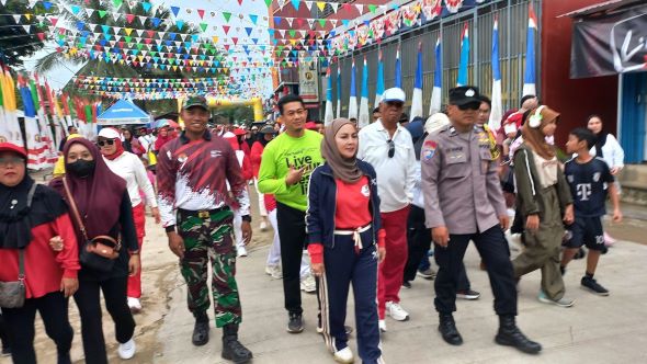 Ratusan warga dari berbagai RT berbaur mengikuti kegiatan jalan sehat dan aneka lomba yang digelar memeriahkan peringatan Hari Ulang Tahun (HUT) ke-80 Kemerdekaan Republik Indonesia.