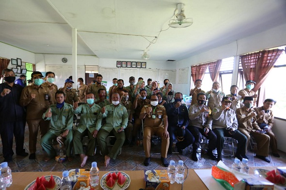 KONGBENG- Usai melakukan Panen Raya Padi Sawah serta dialog bersama para petani yang tergabung dalam Gabungan Kelompok Tani (Gapoktan) Abadi Jaya di Desa Miau Baru, Kecamatan Kongbeng, Kabupaten Kutim, Selasa (11/8/2020), Pelaksana Tugas (Plt) Bupati Kutai Timur (Kutim) H Kasmidi Bulang tak langsung pulang ke Sangatta.