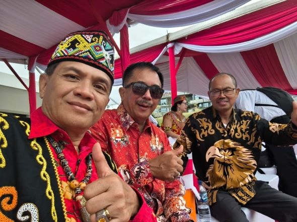 Ketua APINDO Kaltim Dr Abriantinus (kiri) menghadiri Upacara 17-an di IKN.