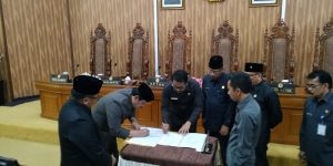 Balikpapan – Pimpinan DPRD Balikpapan bersama Wali Kota Balikpapan Rizal Effendi menandatangani kesepakatan bersama nota keuangan Rancangan Perubahan Anggaran Pendapatan dan Belanja Daerah tahun 2019 dalam rapat Paripurna DPRD, Senin (5/8/2019) pagi. Rapat paripurna ini dipimpin Ketua DPRD Abdulloh dan unsur wakil pimpinan yakni Thohari Aziz, Sabaruddin Panrecallle dan Syarifuddin Oddang.