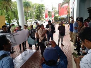 Balikpapan – Kantor DPRD Kota Balikpapan kembali mendapatkan kunjungan, namun kali ini kunjungannya berupa aksi damai dari para jurnalis di Kota Balikpapan. Aksi yang digelar pada Jumat (27/9/2019) ini adalah untuk menyuarakan penolakan RKUHP yang dinilai dapat mengkebiri para wartawan. Kordinator aksi M Idris mengatakan, puluhan jurnalis yang tergabung dalam tiga organisasi yakni IJTI (Ikatan Jurnalis Televisi Indonesia), PWI (Persatuan Wartawan Indonesia) dan AJI (Aliansi Jurnalis Independen) meminta anggota dewan untuk menandatangani petisi penolakan RKUHP tersebut bersama para wartawan yang hadir.