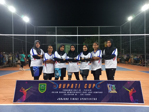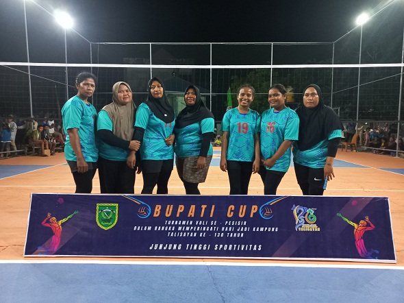TALISAYAN – Turnamen bola voli Bupati Cup memperngati harjadi ke 130 Kampung Talisayan diharapkan dapat menjadi ajang tampilnya bibit muda olahraga ini. Terbukti,  Kampung Bumi Jaya yang selama ini dikenal memiliki talenta muda di cabang olahraga voli menunjukkan kemampuannya.  Tim kuat putri Kartan Dumaring pun dibuat tak berdaya dengan skor 3-0 (26-24, 25-7,  25-22).