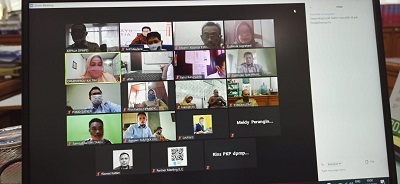 Nampak hadir mengikuti FGD Virtual Kabid Pemdeskel Kasmawati bersama dua kepala seksinya Abdul Rivai, Dakwan Diny, dan Vincentius Samadi Ponco Putro, Kabid Pemberdayaan Kelembagaan dan Sosbudmasy Noor Fathoni, dan Kepala Seksi Usaha Ekonomi Masyarakat, Muriyanto, dan Kasi pada Bidang Pembangunan Desa dan Kawasan Peredesaan Ahmad Nahjani, Esthi Susila Rini, dan Isnawati.(AM)