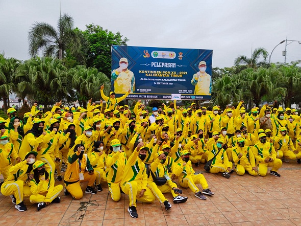 SAMARINDA – Gubernur Kaltim Isran melepas kontingen Kalimantan Timur yang akan berlaga di ajang Pekan Olahraga Nasional (PON) XX di Papua. Pada ajang olahraga multi event ini, kontingen Kaltim mengikuti 36 cabang olahraga dengan julmlah 720 orang terdiri dari 370 atlet, 98 pelath, 12 offisial dan 36 manager dan idampingi unsur panitia pendukung.